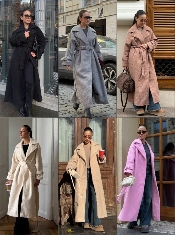 Длинное теплое пальто макси с поясом, кашемир альпака с подкладкой