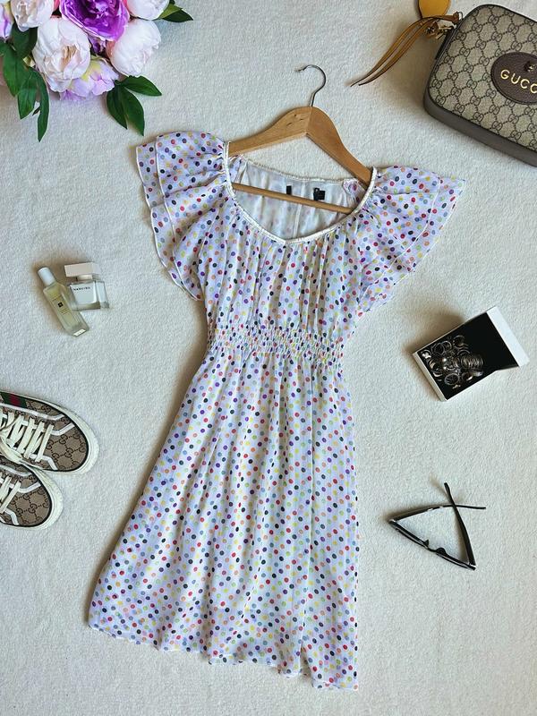 Большой выбор женских платьев, смотрите другие мои объявления 👗👗👗 Мой інстграм linda_zovet для контакта Освещение было плохим и белое платье вышло темным на фото( R42 Воздушное Беленькое шифоновое платье в цветной яркий горошек Бирка с фирмой срезана Размер указан S По грудь 45 см в спокойном положении, можно меньше Но можно и более, потому что на груди присобрано и еще тянется за счет подкладки и за счет резиночки, можно грудь до 98 см максимум. По талия 27 см и тянется Длина 85. Длина до подкладки 77 Состояние Абсолютно Нового! 355 грн (Очень рекомендую, летом под загар, красивые плечики)