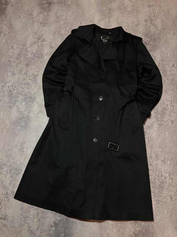 Тренч пальто MAURA by claudia sträter Этот плотный тренч черного цвета в размере M — L от нидерландского бренда имеет в себе отличное качество, плотный материал и теплую подкладку. Застегивается на пуговицы и так же на пояс. На запястьях регулируется маленькими изящными ремешками. Пальто застегивается под горло. Спереди по бокам вместительные карманы. На сайтах продается за 150€.