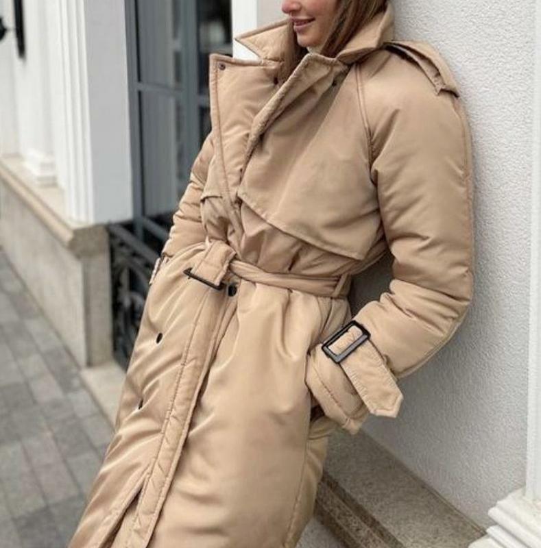Зимний теплый бежевый женский тренч, пальто с утеплением,новый,р.50/52., песочный беж.
