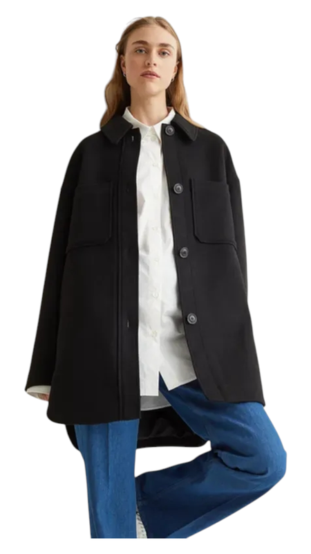 Сезон весна осень, стильная удлиненная рубашка пальто, очень оверсайз, качество шикарное Верхняя одежда, в составе 12% шерсти Черный цвет Размер М-Л, по бирке М, садится оверсайзом, по этому можно спокойно и на Л Замеры: Пог - 63см Длина - 88см