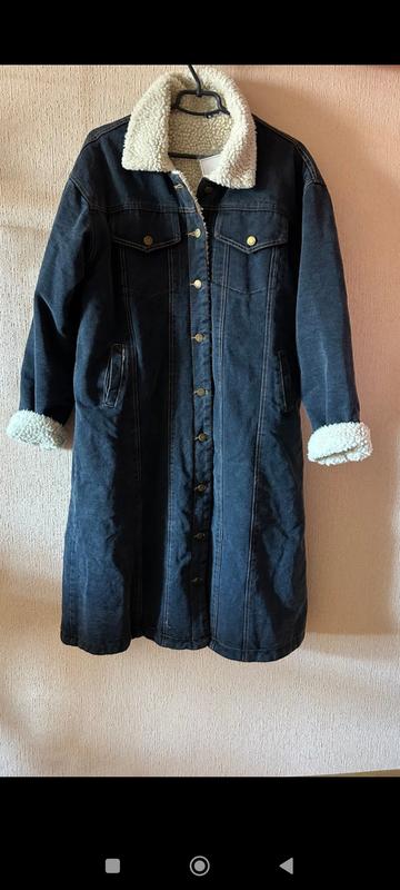 Джинсовое женское пальто с мехом (овчина). Нове. Размер XL. На рукаве молния, можно подворачивать. ПОГ 57 см ПОТ 59 см ПОБ 60 см Длина 112 см Рукав 58 см ( можно подворачивать)