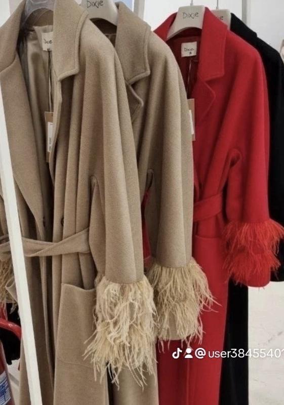 Пальто Dixie,Італія. Неймовірна якість і фасон , гарного червоного кольору , оксамитовий підклад , рукава оздоблені пірʼям , під пояс , на кнопках , накладні кармани , по боках розрізи , фірмовий срібний знак на всіх виробах цього бренду , розмір М , але гарно сідає до Хл . Преміум сегмент . Розпродаж магазину