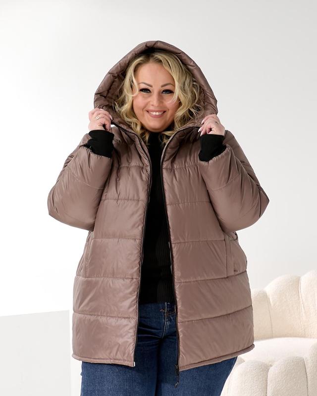 Артикул : 4428 ⁃ Розміри: 4(60-62); 5(64-66); 6(68-70) ⁃ Довжина по спинці: 87 см ⁃ Рукав: довгий ⁃ Матеріал: плащова тканина «лаке» ⁃ Утеплювач: синтепон 250 г/м² ⁃ Кольори: мокко, хакі, сірий, лайм, чорний ЗАЛИШАЙТЕ 6-8 СМ ДЛЯ СВОБОДИ РУХУ ( ОБЬЕМ СИНТЕПОНА ВСЕРЕДИНІ) Заміри виробу: ⁃ 4 р/р: О.Грудей 148 О.Талії 148 О.Стегон 148 ⁃ 5 р/р: О.Грудей 156 О.Талії 156 О.Стегон 156 ⁃ 6 р/р: О.Грудей 164 О.Талії 164 О.Стегон 164