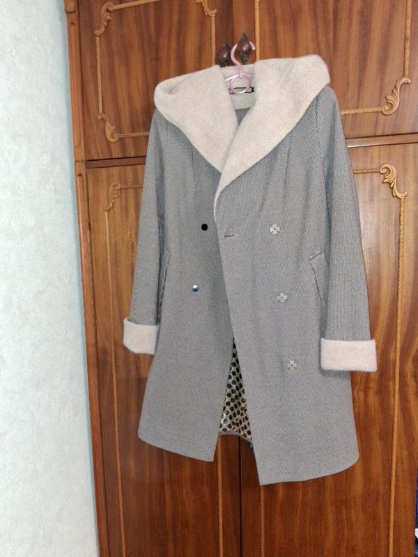 Пальто осень, весна, теплая зима. Является капюшоном и поясом. Размер 42-44. длина до колен. Без нюансов.