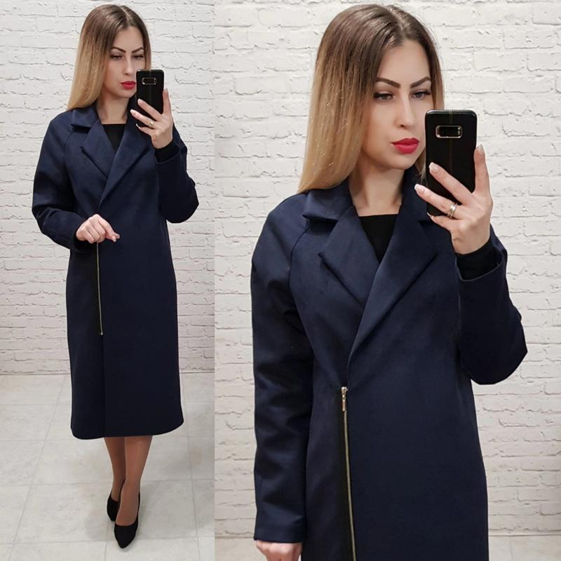 Замшевое весеннее пальто косуха на подкладке стильное и новое синее