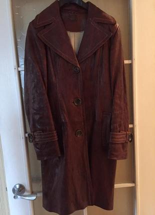 Стильне пальто аdamo, щільна натуральна шкіра, вовняна підкладка, розмір м або наш 46