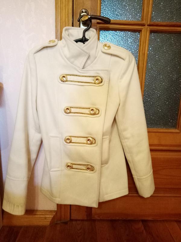 Пальто белое Venefika Vestis с золотистыми пуговицами, два кармана. Осень - весна. Размер S.