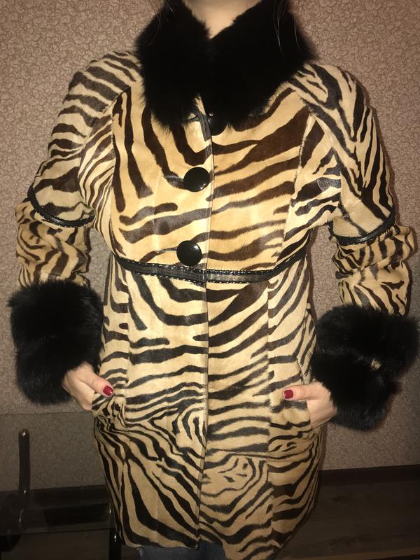 Натуральне шкіряне пальто з поні та хутром чорнобурки