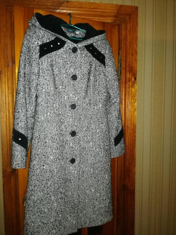 Пальто хорошее, 46 размер. Пуговицы на месте. Подкладка целая. Демисезонное. Есть капюшон.
