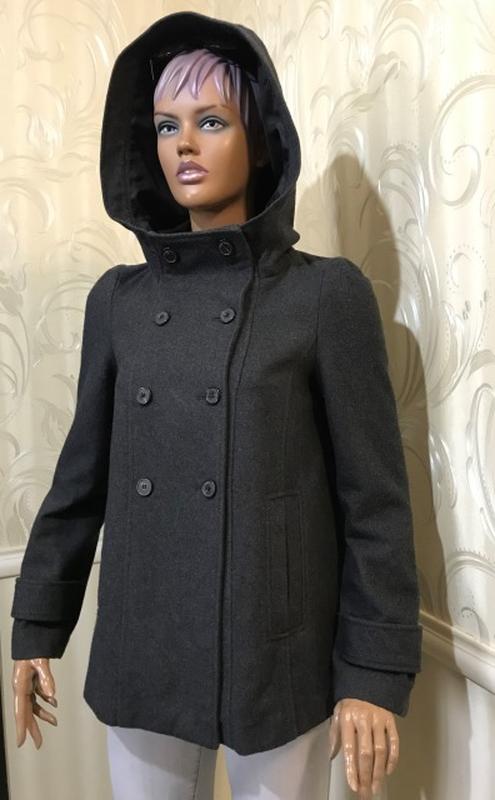 Двубортное пальто с вшитым, объемным капюшоном серого цвета, укороченного расклешенного кроя, пр бокам продольные прорезные карманы, сзади центральная складка, застегивается на брендированные пуговицы, полностью на подкладке. Бренд ZARA, Состав: 55% шерсть, 35% полиэстер, 4% найлон, 3% акрил, 3% вискоза, подкладка - 100% полиэстер. Размер Размер по бирке на изделии M, подойдет и на S (см.замеры). Замеры: плечи - 36/38 см., ПОГ - 49 см., ПОниз - 63 см., длина от плеча - 66 см., длина рукава: внешняя - 64 см., внутренняя - 46 см. Размер манекена S. Ласкаво просимо в наш магазин. Відомі бренди, відмінна якість - доступні ціни.
