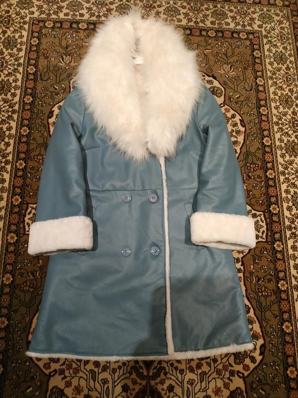 Класне зимове пальтішко,екошкіра,модного джинсового кольору,стан чудовий,потертостей немає,на фото при потребі ще дороблю,розмір пише хл.,але реально л.заміри також напишу. Комір-штучне хутро, відстібається.