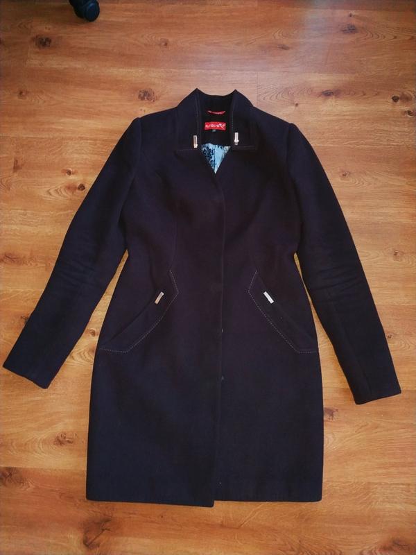 Пальто темно баклажанового кольору є поясок,який підкреслить талію недолік:трішки всередині по шві розійшлась підкрадка
