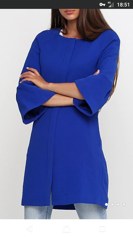Пальто на подкладке, застегивается на молнию. Спереди прорезные карманы. Цвет-синий. Состав :100% полиэстер.