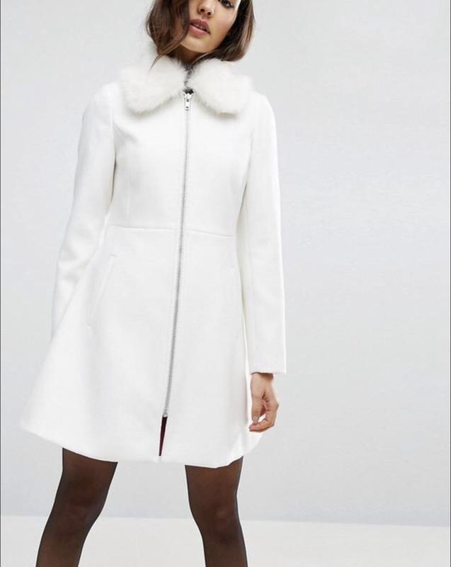 Шикарное восхитительное пальто молочного цвета! От бренда ASOS. Отменное качество и посадка, чуток маломерит, на размер примерно. Приталенное. Мех искусственный на воротнике, отстёгивается. Невероятно приятная нежная ткань! Новая вещь! Смотрится просто БОМБА! Асос пальто, Нове з біркою. Матеріал: 96% поліестер, 3% віскоза, 1% еластан. Размер указан 12 - 40EU - L, но подходит на 46-48-М. Смотрите более точные мерки. Заміри: довжина 89 см пог 47 см пот 41 см поб 58 см Довжина рукава 62 см Плечі 40 см Отправка Новой почтой или укрпочтой.