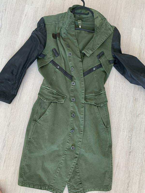 Продам джинсовое пальто-платья G-Star raw}вещь в идеальном состоянии в размере Xs }кожаные рукава ,плотный джинс