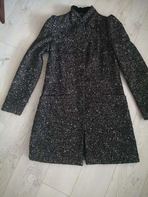 Черно белое пальто. Размер M.Два передних кармана.