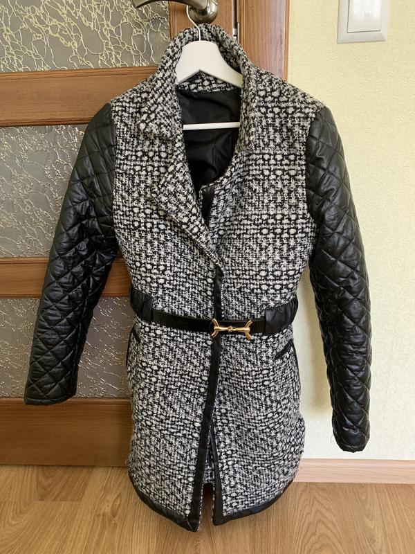 Весняне-осіннє пальто зі шкіряними рукавами і поясом,в гарному стані,підійде на розмір M-L