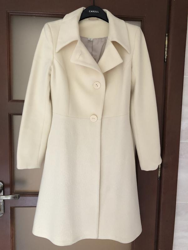 Кашемірове пальто, молочного кольору. Розмір 36-38{с,м}. Юбка з тисненням в квіти. Гарно підкреслює талію На ріст 160 см. Можливий торг!!!