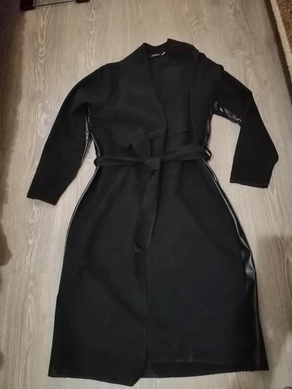 Пальто кашемир, на запах . Вставки эко кожа. Очень лёгкое и удобное. Размер 44,46,48