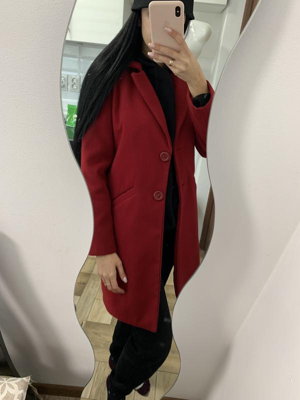 Пальто кашемір на підкладці,колір бурдо,марсало.Є бічні кишені, Застібається на ґудзики