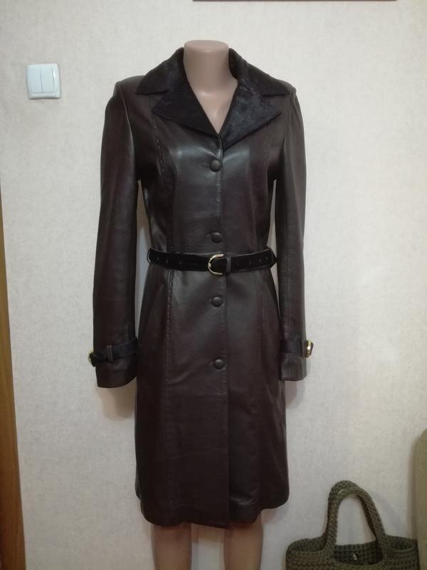 Кожаное пальто-тренч маленького размера, р.S/38 Длина - 98см Длина рукава - 62см ПОГ - 44см ПОТ - 39см ПОБ - 48см Ширина плеч - 40см