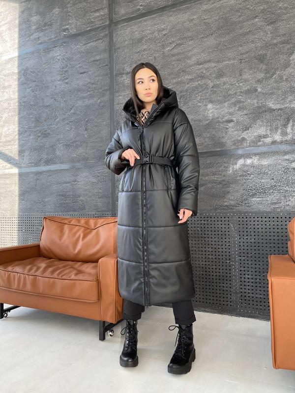 New💫 Пальто # 4 Размер oversize 42-48 Ткань эко кожа матовая Утеплитель силикон 250 Подкладка нейлон Длина изделия 120 см Длина рукава от горловины 72 см Обхват груди по верху изделия 114 см Пояс в комплекте Цена 1550 грн