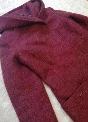 Бордове вовняне пальто з капюшоном з поясом. Демісезонне Підійде на теплу зиму. З. Р. 43см. З. Т. 41см. З. Б. 47. Довжина 80см. Рукав 62cm від плеча.