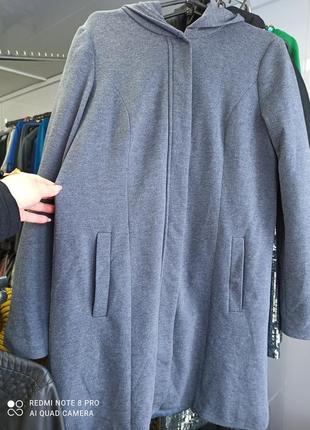 весеннее пальтишко с капюшоном, очень красиво садится по фигуре.цвет на первом фото.ткань фактурная.пог.53+выточки,пот51 ,поб.54, длинна 86,рукав 65