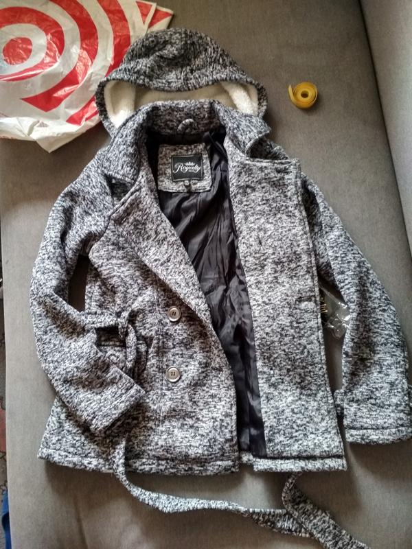 Демисезонное полупальто с капюшоном и карманами Royalty США, меланж, размер S/М – 800 грн. Продам новое с бирками женское деми полупальто Royalty for Me, привезли из США. Цвет: черный, темно-серый, белый - меланж. С капюшоном на меху, карманами и поясом. На пуговицах. Капюшон отстегивается. Укороченное. V-образный вырез. Рукав длинный. Есть подкладка. Состав: 35% акрил, 65% полиэстер. Замеры: Размер – S / M Рукав: длина: 61 см Длина пальто от шва на плече 66 см Ширина по плечам - 38 см Ширина под рукавами – 50 см Ширины в талии – 46 см Ширина внизу – 58 см Замеры дополнительно и фото по запросу сделаю. Доставка Новой и Укрпочтой, Justin после предоплаты на карту. Или самовывоз Киев. Смотрите другие мои объявления. Экономьте на доставке.