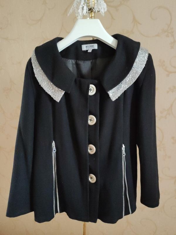Красивое укороченное пальто Moschino ткань кашемир с шикарными пуговицами, украшено двумя молниями и пайетками под воротником Размер идёт на М,S