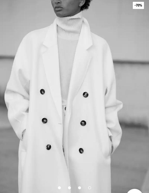Пальто шерстяное двубортное оверсайз белое шерсть massimo dutti оригинал