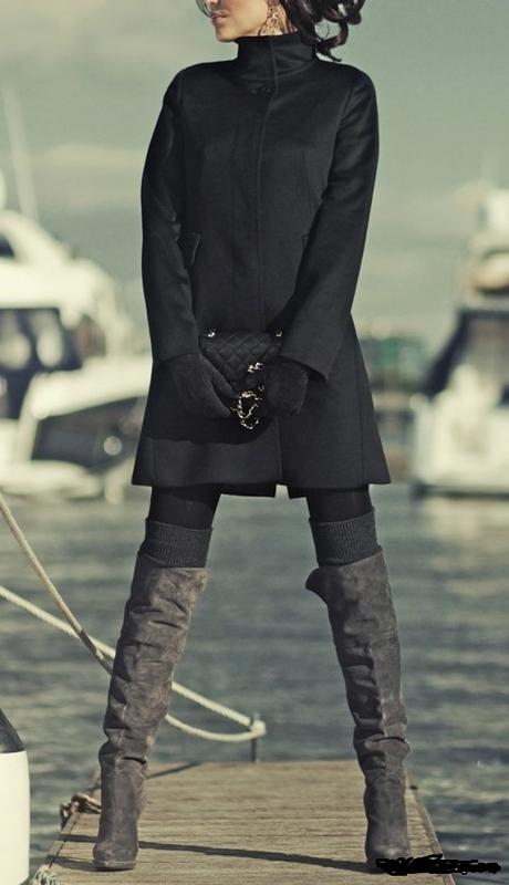 Черный плотный тренч пальто плащ на стойку от for women