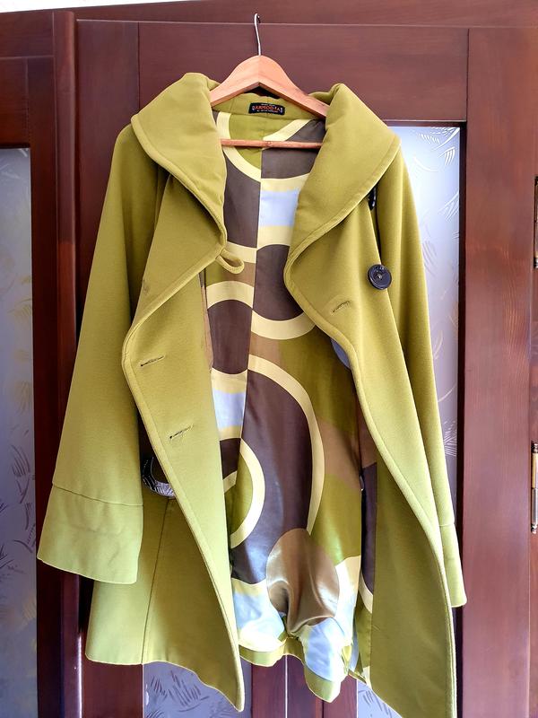 Дуже якісне турецьке кашемірове тепле пальто оливкового кольору на середню та холодну погоду. Стан нової речі. Довж.рук 72см в розвернутому стані.Довж пальта 92см Обхват грудей 80см