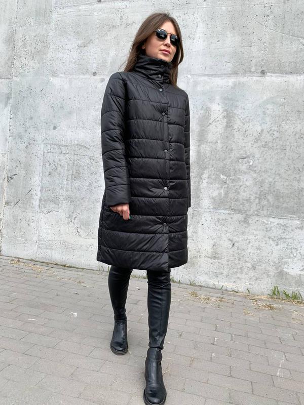 Розмір: one size, підходить на S-M, грудь 82-92 см +/-, стегна до 95/96 см +- На фото вдягнуто на грудь 82 см, стегна 93 см, зріст 166 см Заміри: довжина: 94 см ширина (напівобхват в районі пахв): 52 см рукав: довжина від плечевого шва 60 см +/-, внутрішній шов 49 см плечі: 42 см +/- Заміри можуть мати невелику похибку Сезон: демісезонна (осінь/тепла зима/початок весна) Матеріал: плащівка, наповнюч синтепон Колір: чорний