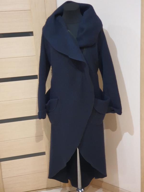 Xenia Design, пальто, размер 48, цвет синий, без подкладки, молния, вяленая шерсть, оригинального кроя, накладные карманы