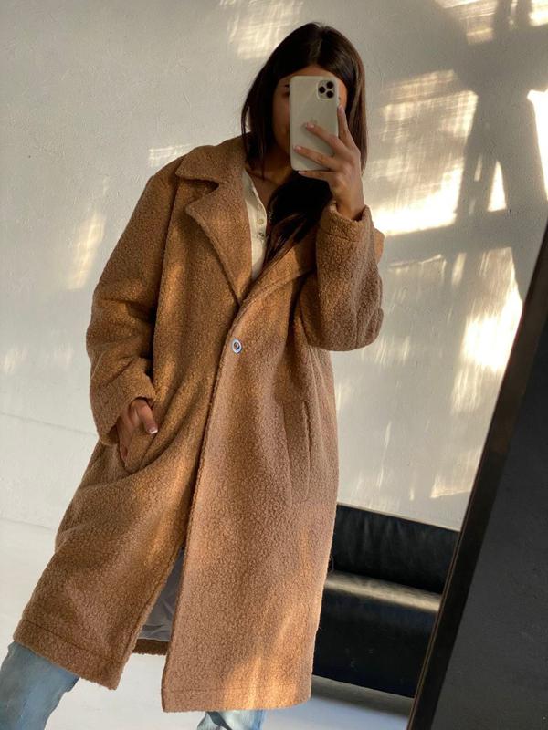 Модель 30242 Ткань эко-мех овчина, подкладка Цвет черный, крем, оливка, пудра, мокко, беж Размер 42-46 оверсайз