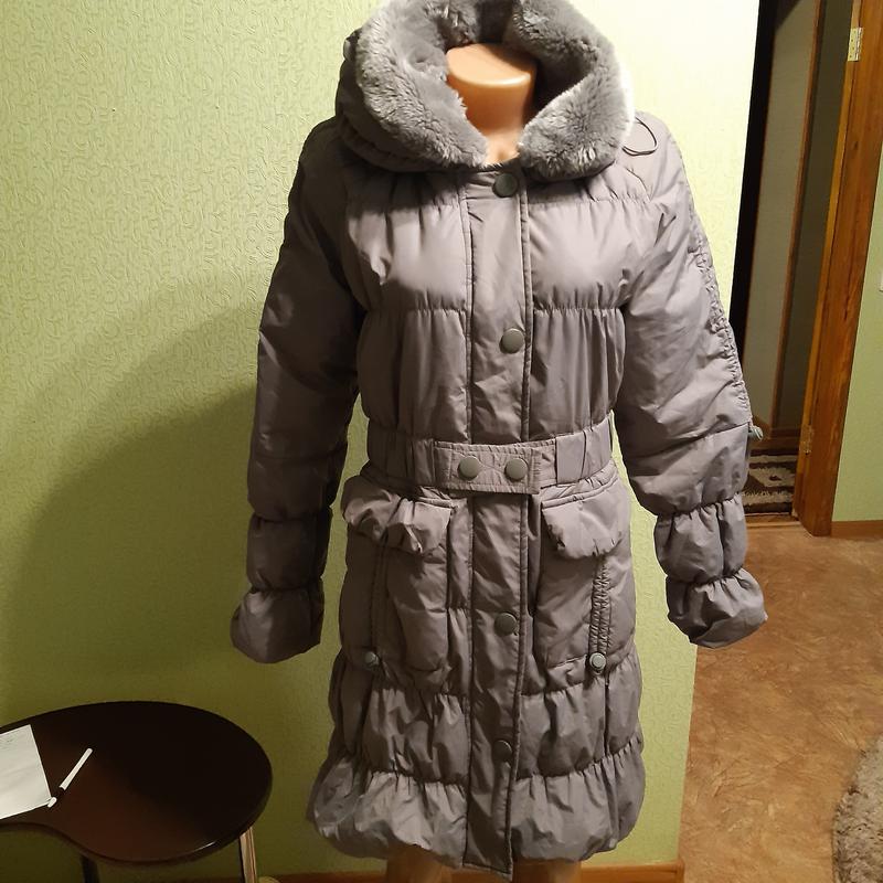 стильное тёплое пальто их синтетических материалов,идеальный пошив, брендовая фурнитура, двойной воротник( мех мнимается) + съёмный капюшон, в поясе выставлена широкая эластичная лента,низ и длина рукава и ширина капюшена регулируется кулиской, двойная застёжка( молния + кнопки) ПОГ 54, ПОТ 40-48,длина 90,рукав реглан.