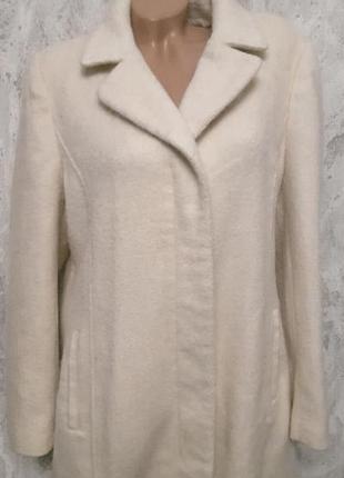 Шикарне "молочне"пальто .р 52/54 пог 60/62cm,пот 56.58 см,по стегнах 65/67см,довж 91см,плечі 43 см,рукав 65см
