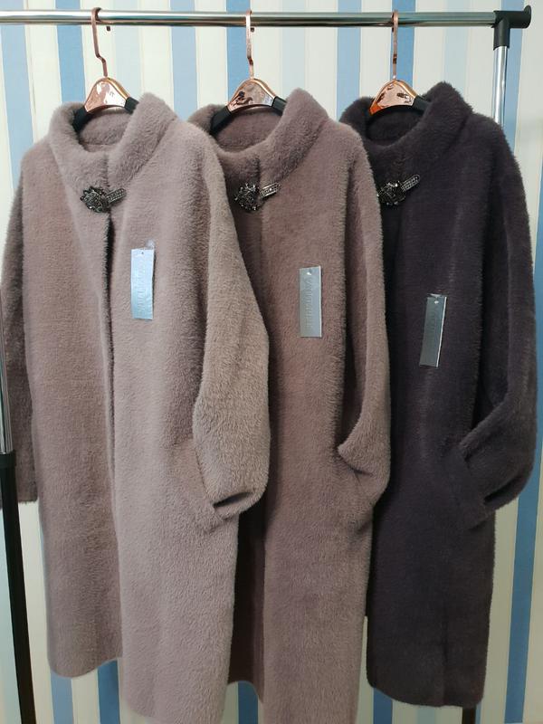 Пальто,кардиганы с альпаки с брошью и вотротником стойка.
