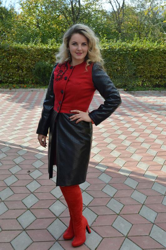 дуже гарне пальто -верх кашемір, рукави і низ перфорована екошкіра