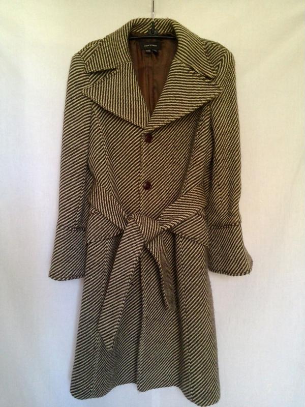 Сезон: осень-зима Цвет: верх - в полоску (коричневый + бежевый); подкладка - коричневый Застежка: на пуговицах Два кармана с клапанами Материал: верх - мягкая пальтовая ткань ( шерсть 55%; нейлон 45%) подкладка - вискоза 100% Замеры (на изделии), см: полуобхват груди - 49 полуобхват талии - 45 ширина плеч - 43 длина рукава - 59 (от плеча); 43 (из-под мышки) длина пальто (по спине) - 98 Страна производитель: Испания