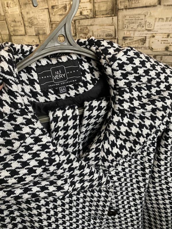 Пальто в трендову гусячу лапку чорно-білого кольору у відмінному стані 44 розмір