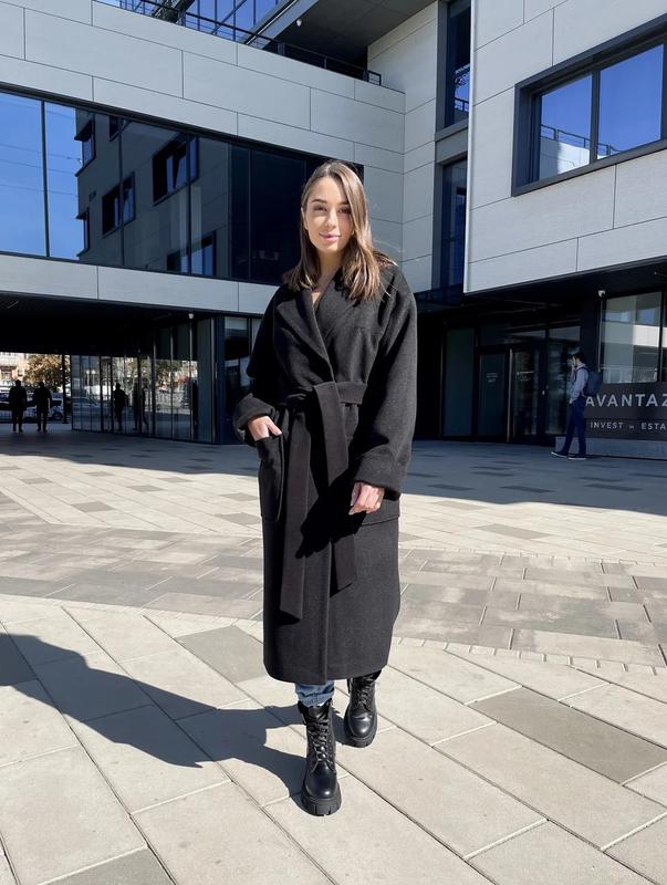 1. Оплата на карту полная или частичная 200 грн. остаток при получении товара. 2. Сборка и отправка заказа в сезон 2-4 рабочих дня. 3. Пересылка Новая почта за счет покупателя. Все необходимые детали по размерам - уточняйте. Код: 321 черный кашемир Италия Длинное пальто-халат из великолепной шерсти черного цвета. Спущенное плечо, рукав с отворотом, накладной карман, потайные кнопки, пояс. Застежка на потайные кнопки отличного качества. Запасная кнопка в комплекте. Большие накладные карманы. Длина: 115 см. Размерный ряд: 40 - 52. Великолепный состав ткани: 63% шерсть, 17% вискоза, 20% полиэстер Утеплитель: слимтекс зимний