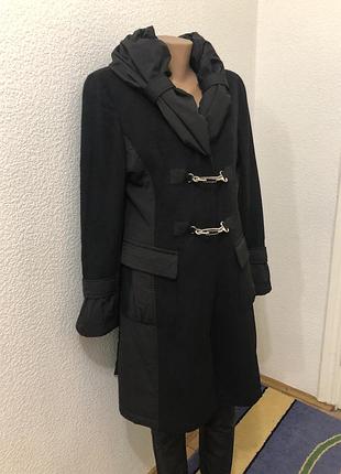 Р.40 Пальто шерстяне з вставками плащовки. Довжина 95 см, плечі 42 см, рукав 62 см., Пог 50 см, Пот 46 см , поб 54 см Колір чорний.