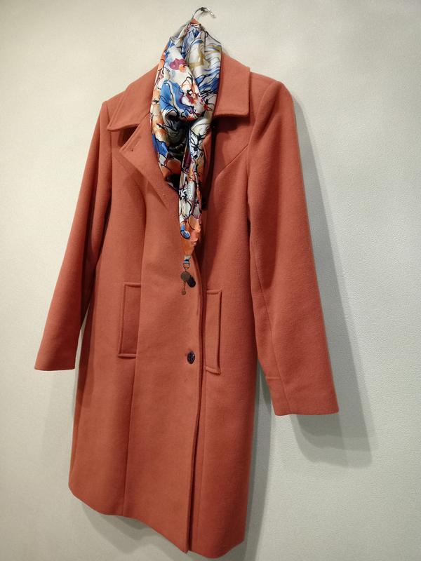 Пальто кораллового цвета в хорошем состоянии, классический покрой, шелковая подкладка, очень освежающий цвет