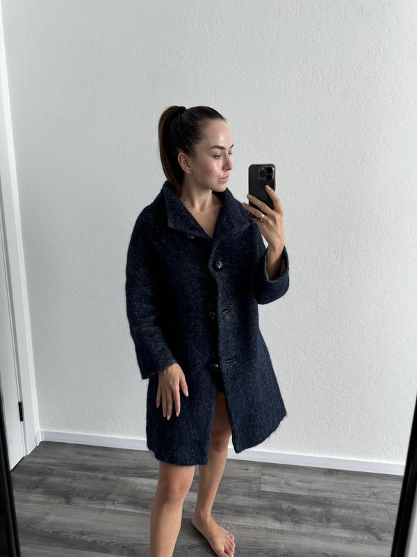 Пальто со спущенными плечами, очень хорошее качество в составе шерсть Пальто женское бренда Cop.Copine, размер S-L Длина 85 см Длина рукава 37 см, рукав идет 3/4 плечи приспущены Полу обхват гредей 55 см Очень качественная фурнитура Есть подкладка Состав 40% шерсть