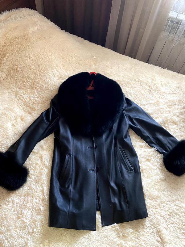 Пальто натуральная кожа, мягкая, очень красиво пошита трапецией. Мех песца натуральное пышное и богатое, отстегивается и на воротнике и на рукавах. Внутри слегка утеплён. Размер 48-52 Кожа мягкая, лайковая. Купилось в мире кожи и меха за 8000 грн 5 лет назад