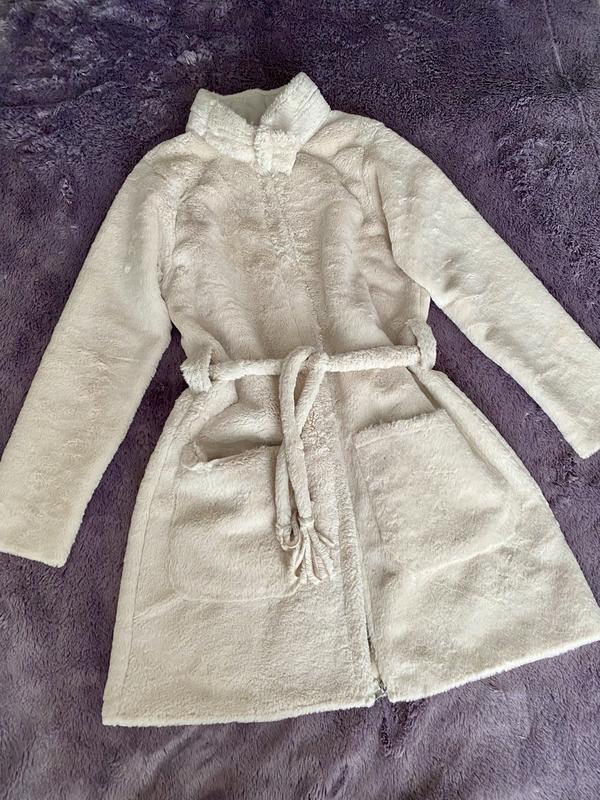 Светлая молочная шуба пальто с поясом, весеннее осеннее размера Xs, S В идеальном состоянии