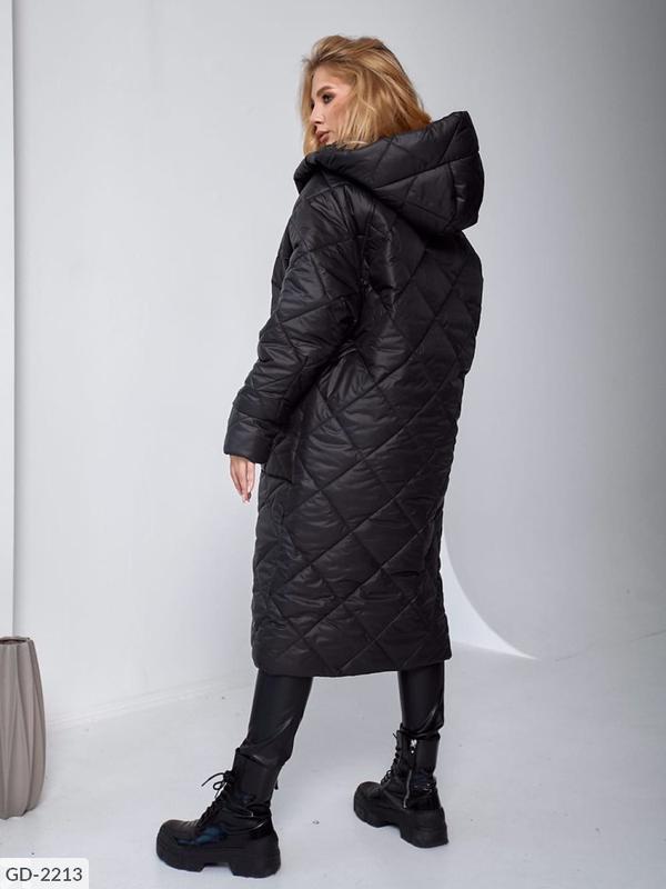 Пальто GD-2207 мод: 00-15 Размеры: 42-48 Пальто-зима стёганное Ткань: monkler-водоотталкивающая Наполнитель синтепон-300 Стёганное, с глубоким капюшоном, карманами. Подкладка-принтованная Рукав реглан, манжет. Застежка: змейка, двухсторонняя. Цвет: пудра, яблоко,чёрный Замеры: Ог128 см Об126 см Длина изделия115 см Длина рукава, от капюшона-80 см
